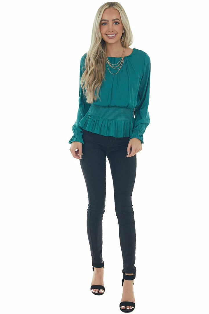 - Juniper Smocked Waist Bubble Sleeve Peplum Top