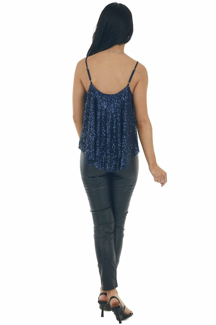 - Navy Blue Spaghetti Strap Knit Sequin Cami Top