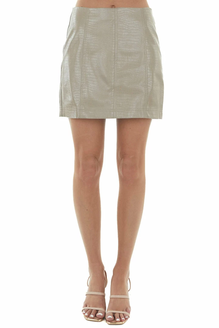 - Oatmeal Animal Texture Pleather Mini Skirt