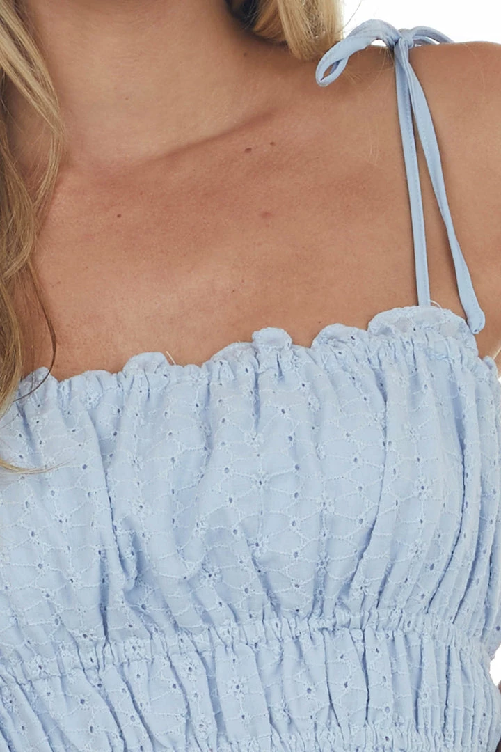 - Pastel Blue Eyelet Textured Tie Strap Cami