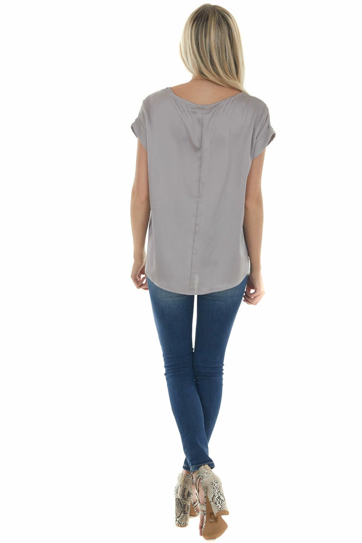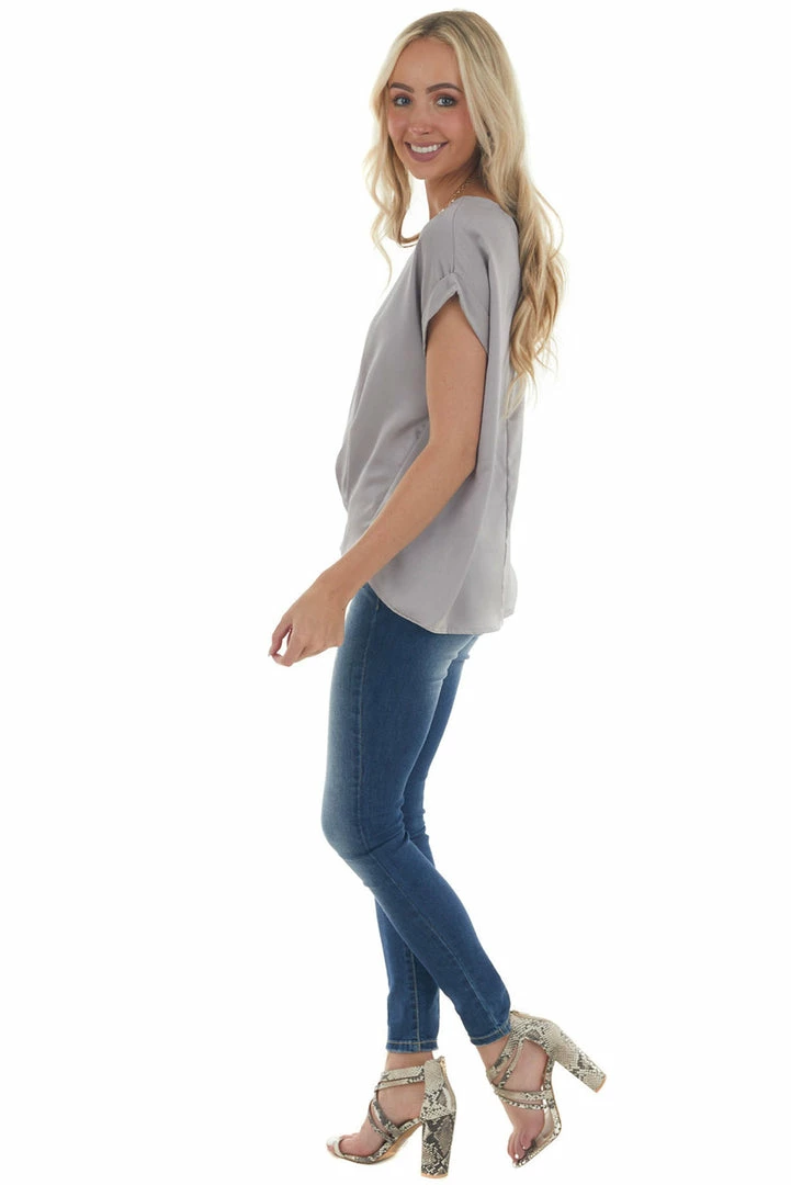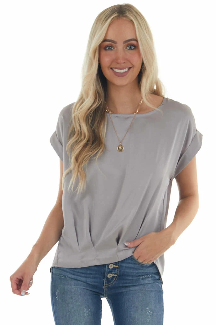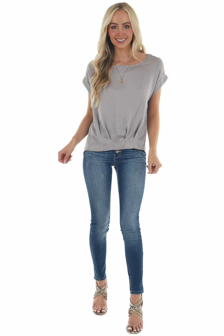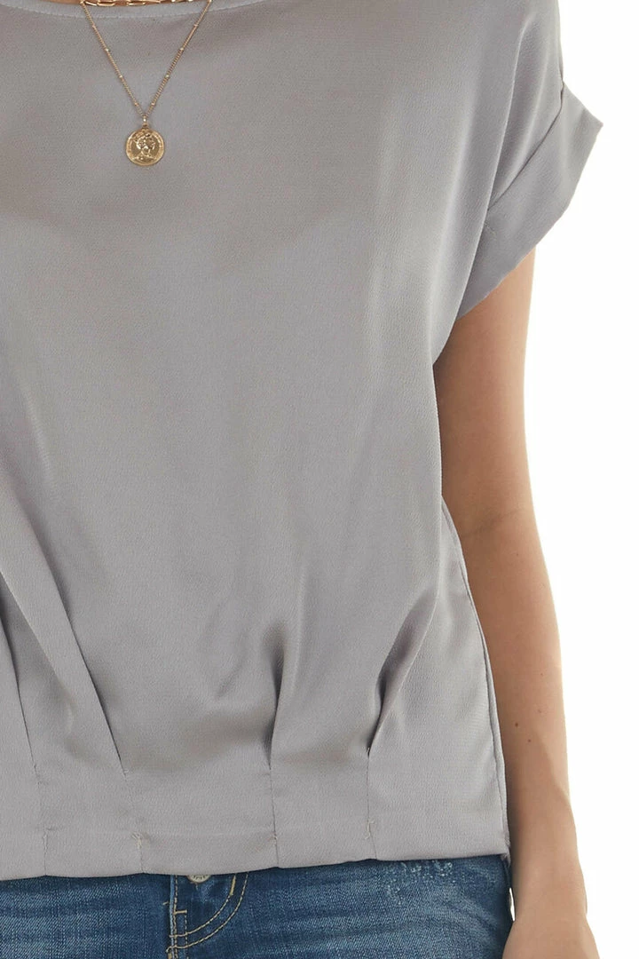 - Silver Short Cuff Sleeve Pleated Hem Blouse