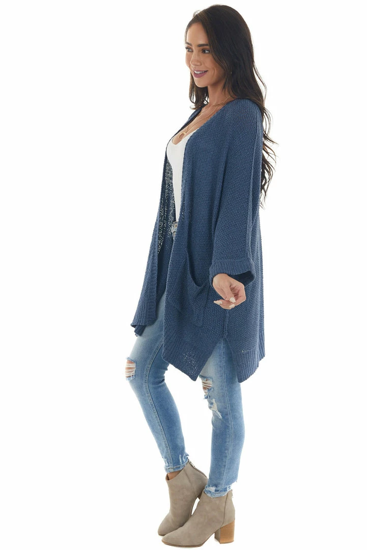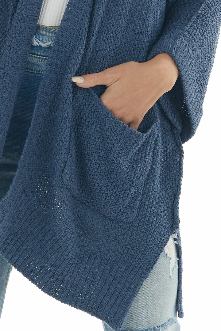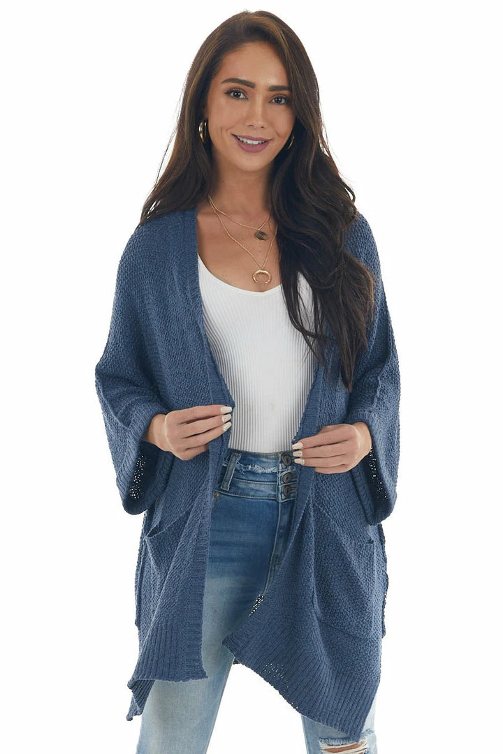 - Steel Blue Loose Sleeve Cardigan with Pockets