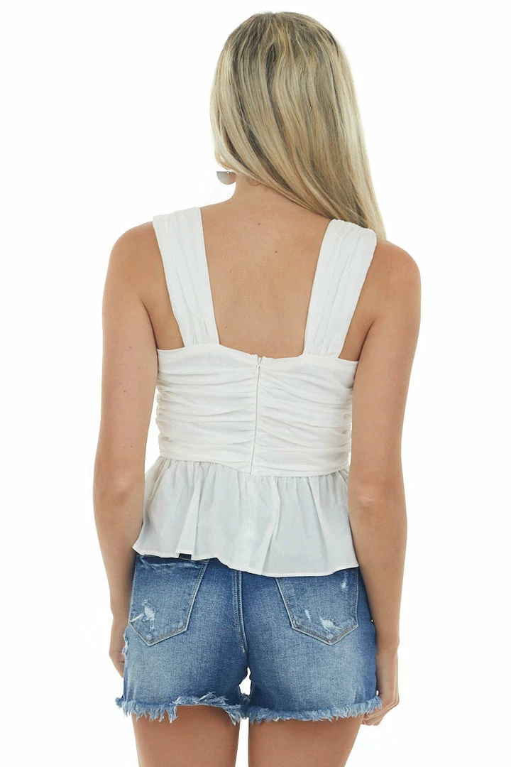- Off White Ruched Bodice Sleeveless Peplum Top