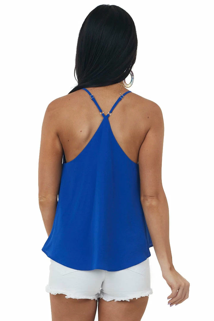 - Royal Blue Textured Scoop Neck Swing Cami Blouse