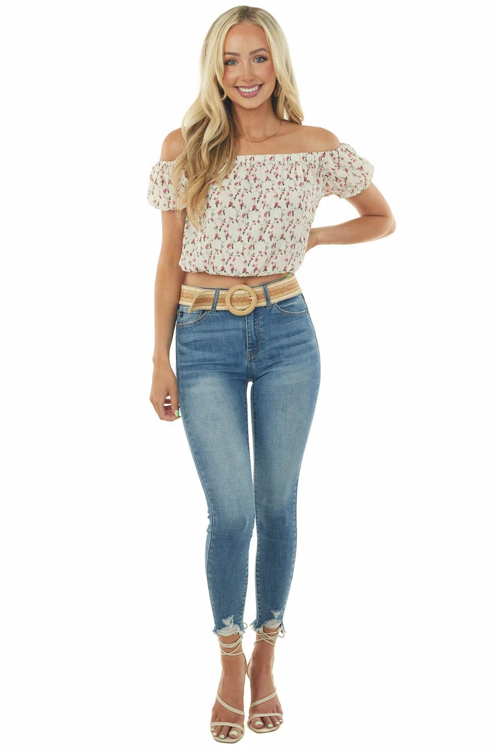 - Vanilla and Mulberry Floral Print Off the Shoulder Blouse