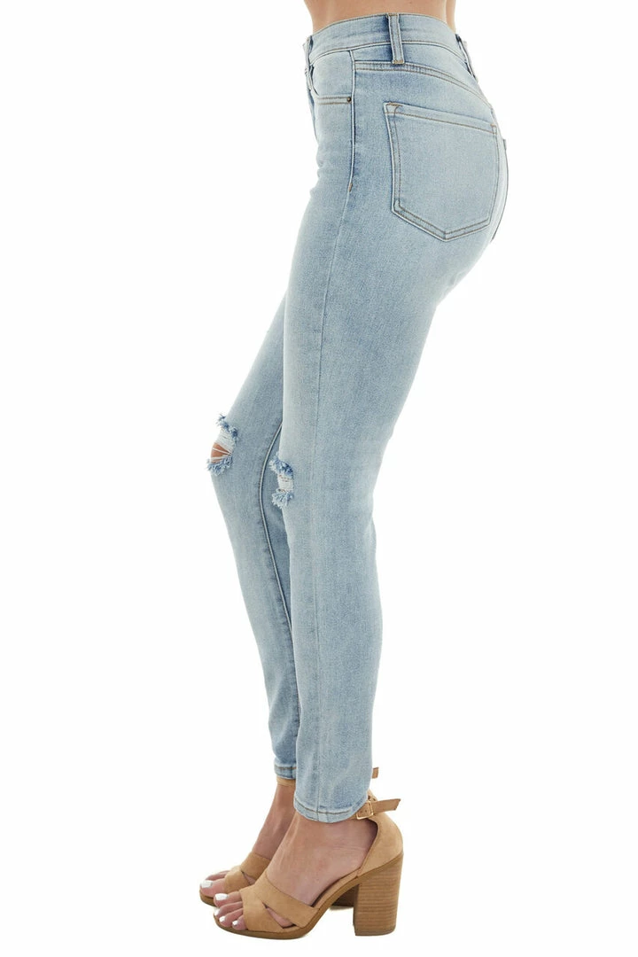 - Light Wash High Rise Knee Torn Skinny Jeans