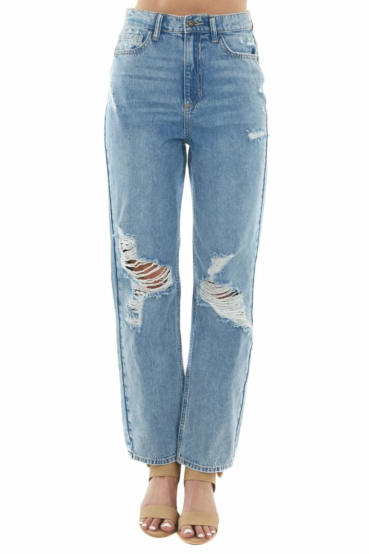 - Medium High Rise Destroyed Relaxed 90s Jeans