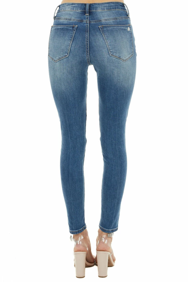- Medium Dark Wash Mid Rise Distressed Skinny Jeans