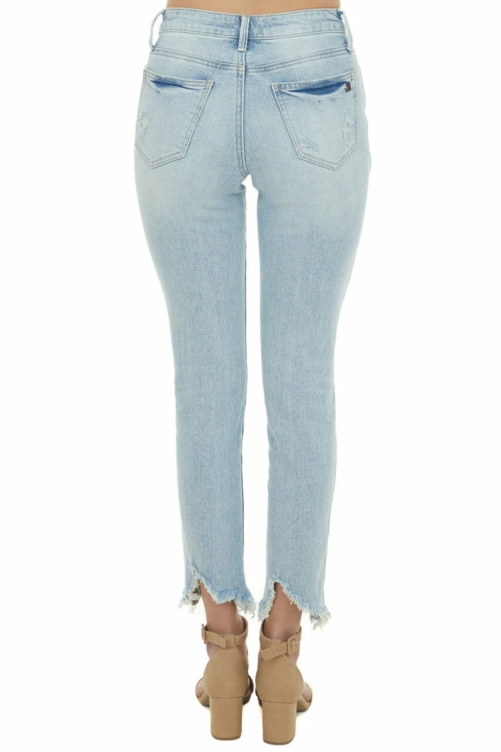 - Medium Denim High Rise Distressed Frayed Jeans