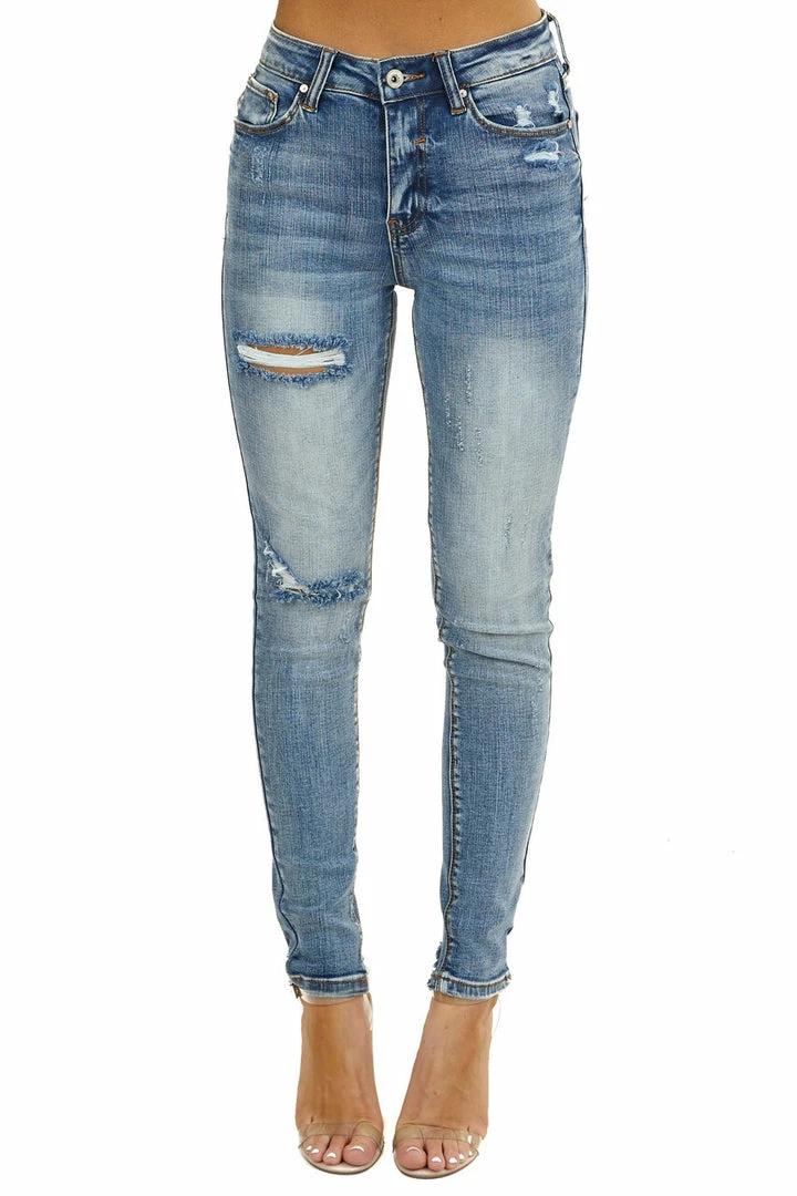 - Faded Medium Wash High Rise Distressed Skinny Jeans