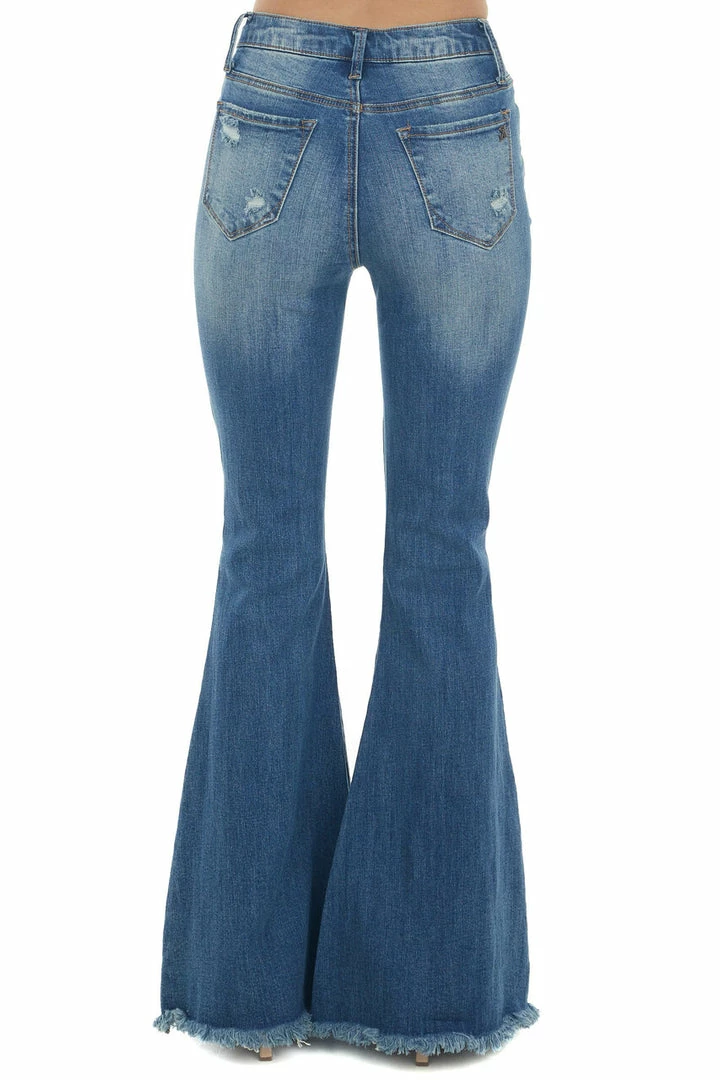 - Medium Wash Frayed Hem High Rise Flare Jeans
