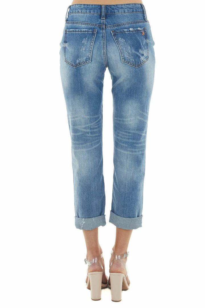 - Medium Wash Mid Rise Distressed Jeans with Rolled Cuffs