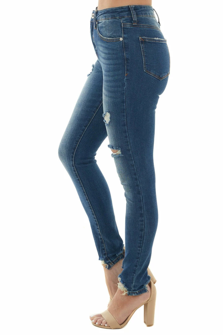 - Mid Wash High Rise Shark Bite Hem Skinny Jeans