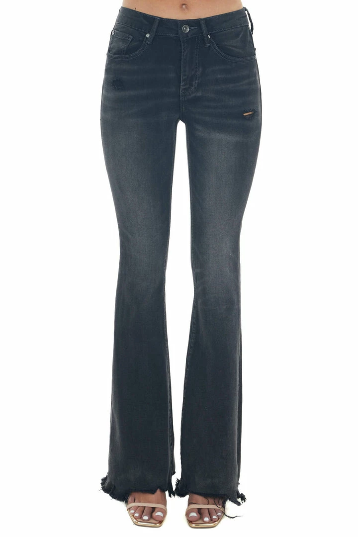 - Vintage Black Mid Rise Raw Cut Hem Flare Jeans