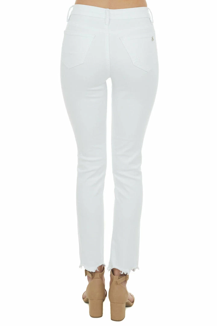 - White High Rise Raw Hem Relaxed Skinny Jeans