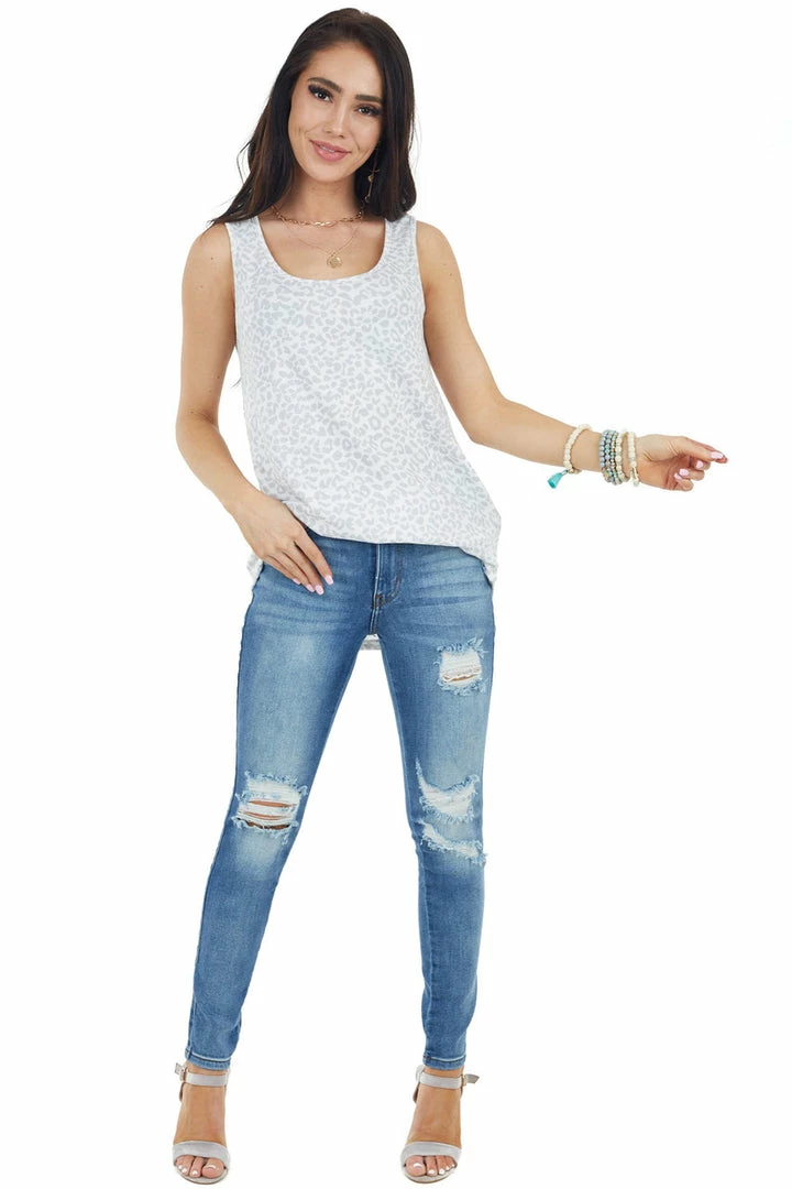 - Ivory and Dove Grey Leopard Print Sleeveless Knit Top