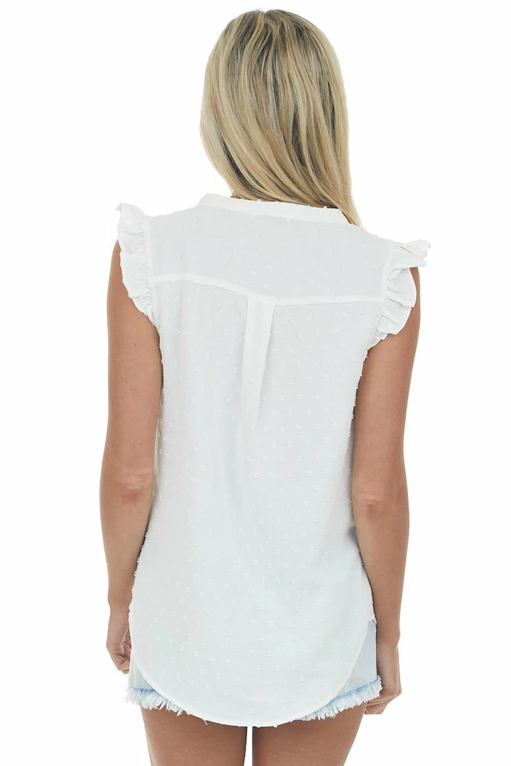 - Off White Swiss Dot Notch Neck Fill Blouse