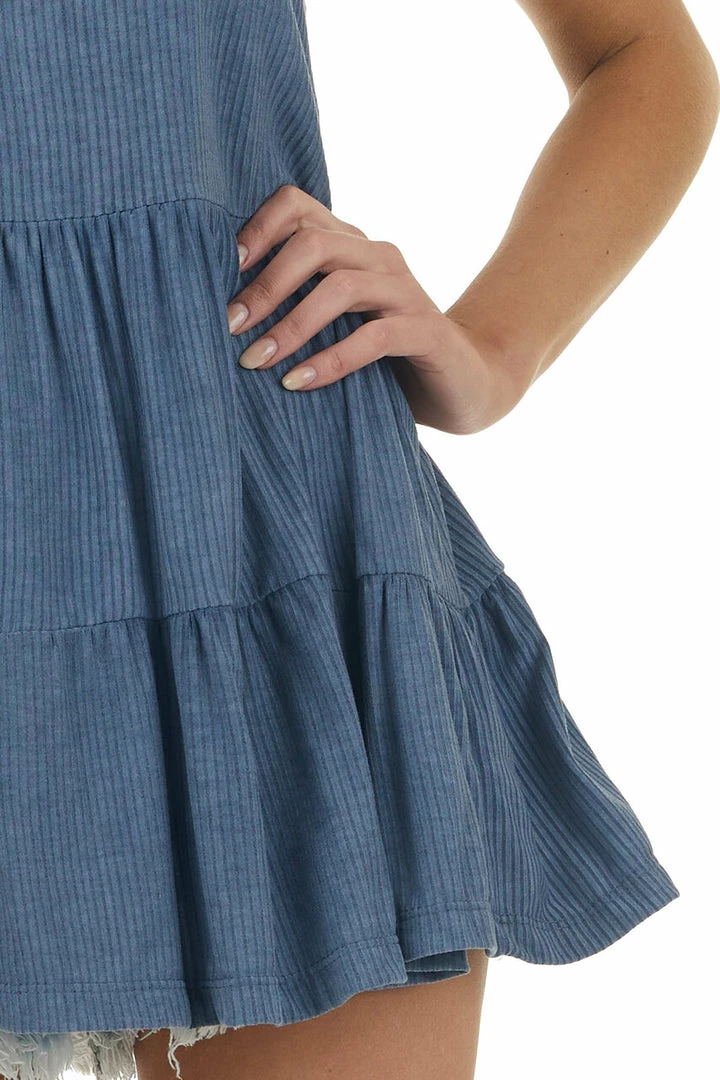 - Denim Blue Sleeveless Ribbed Knit Tiered Drop Waist Top