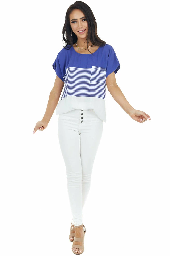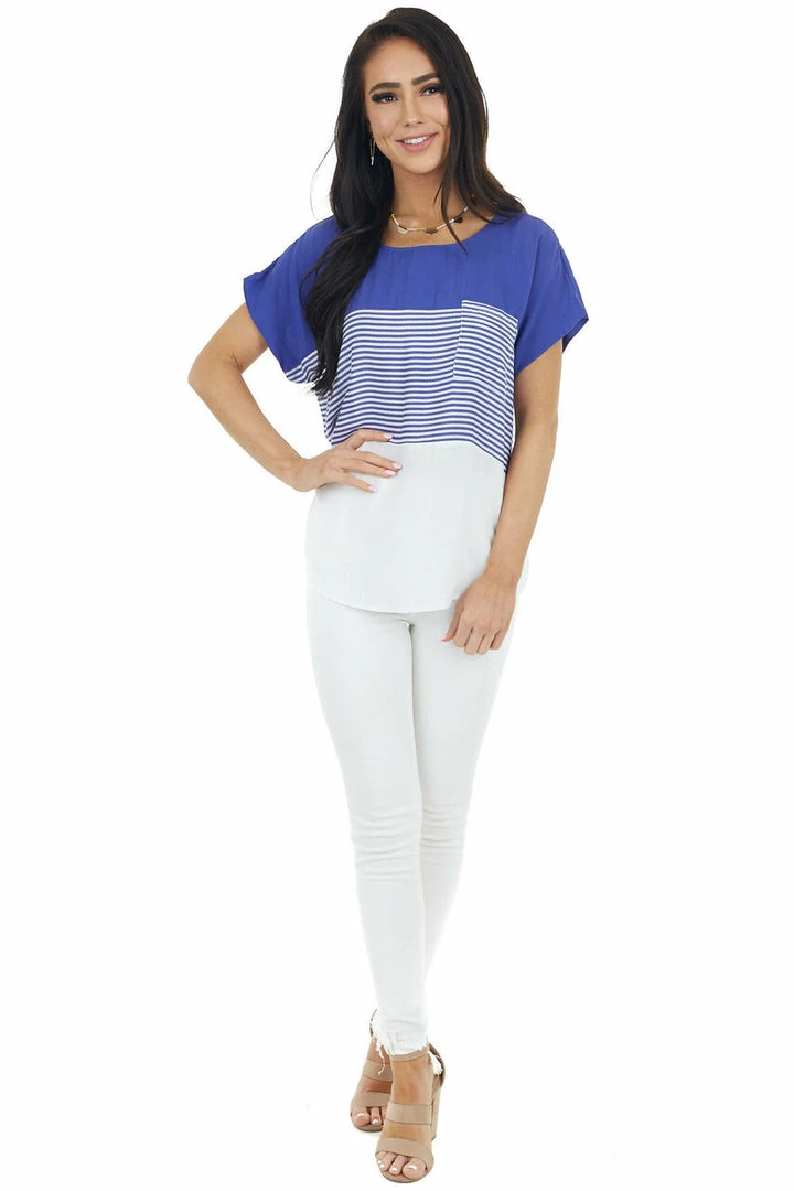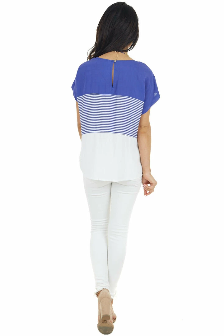 - Royal Blue and White Colorblock Striped Short Sleeve Top