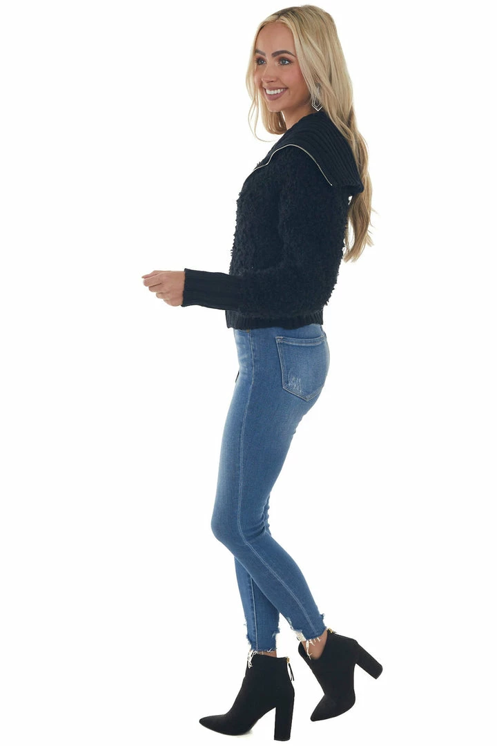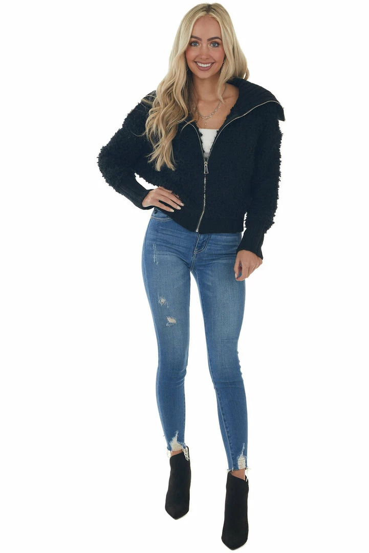 - Black Teddy Turtleneck Zip Up Sweater Jacket
