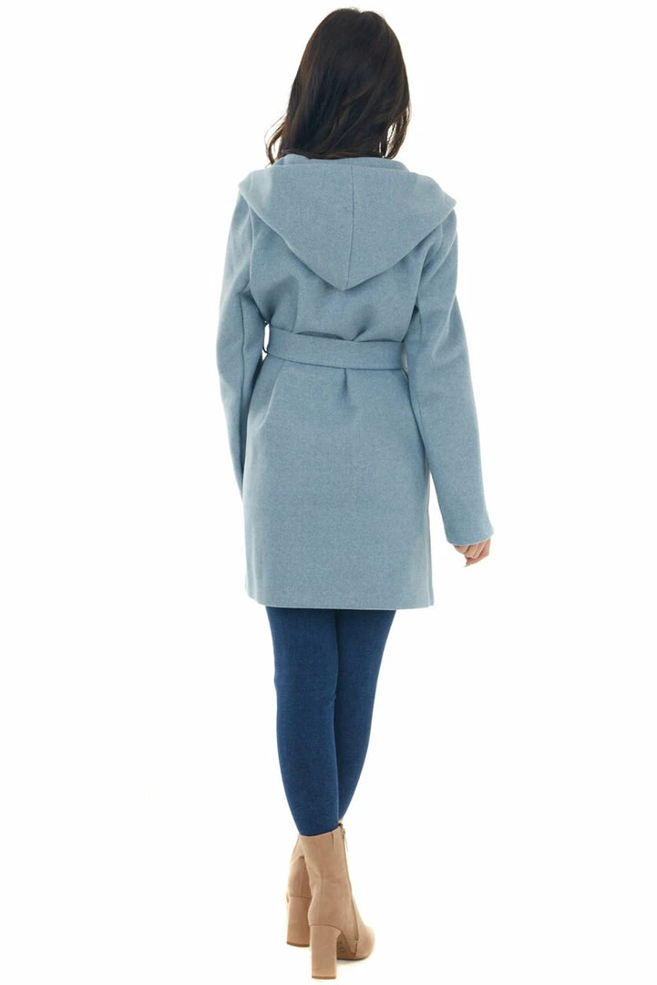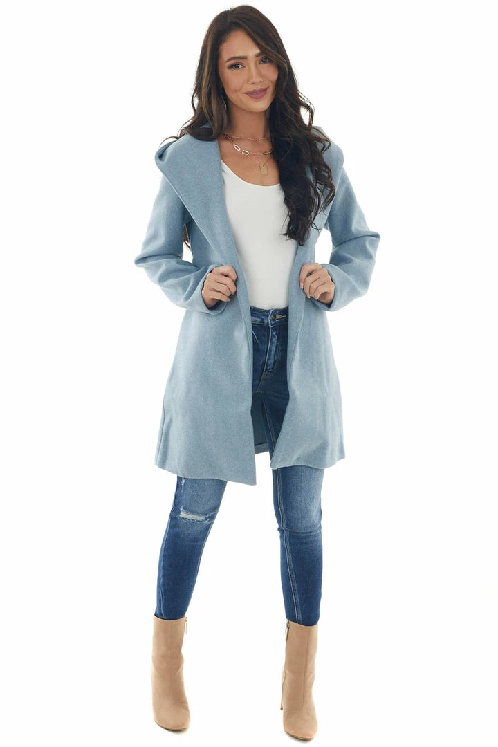 - Melange Powder Blue Hooded Brushed Knit Coat
