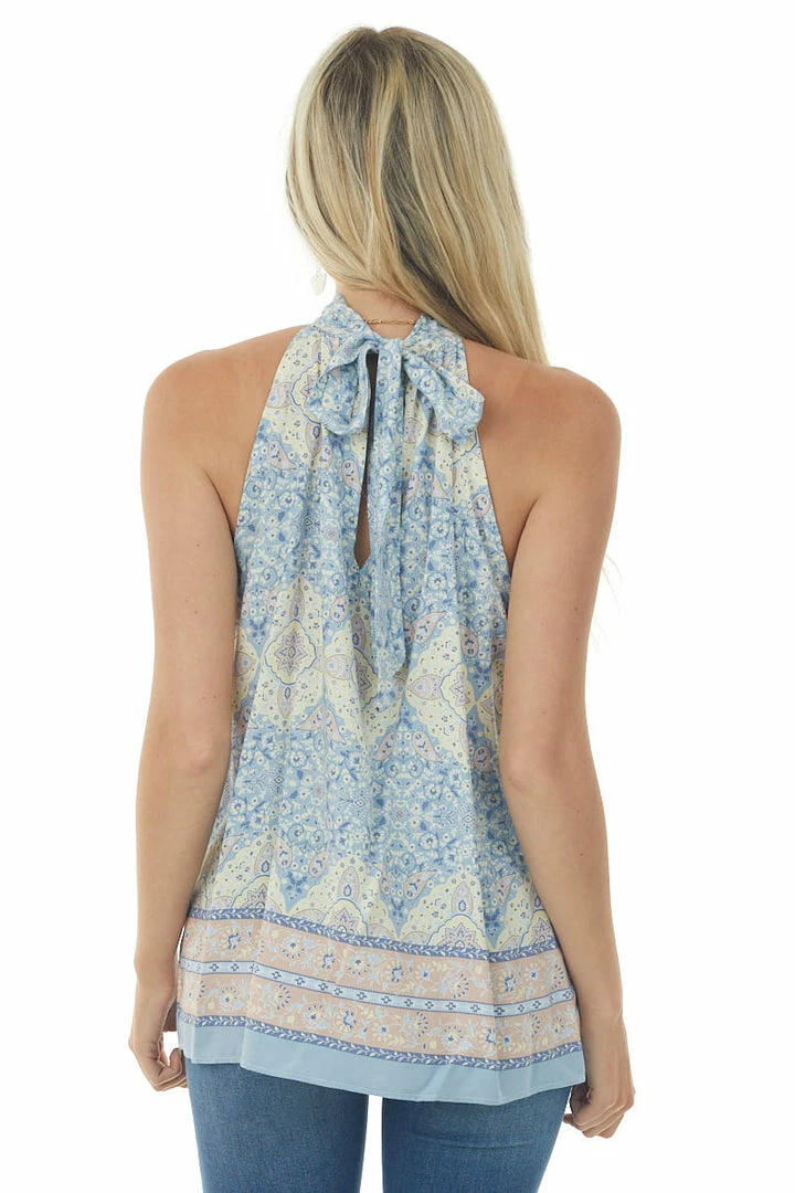- Paisley print in shades of Cornflower, Deep Sapphire, Dusty Blush, Pastel Yellow and Ivory
