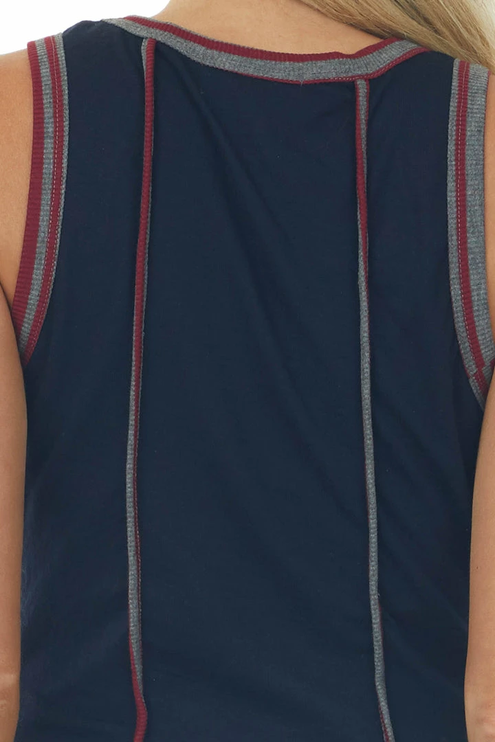 - Navy Ribbed Stripe Exposed Seam Knit Tank Top