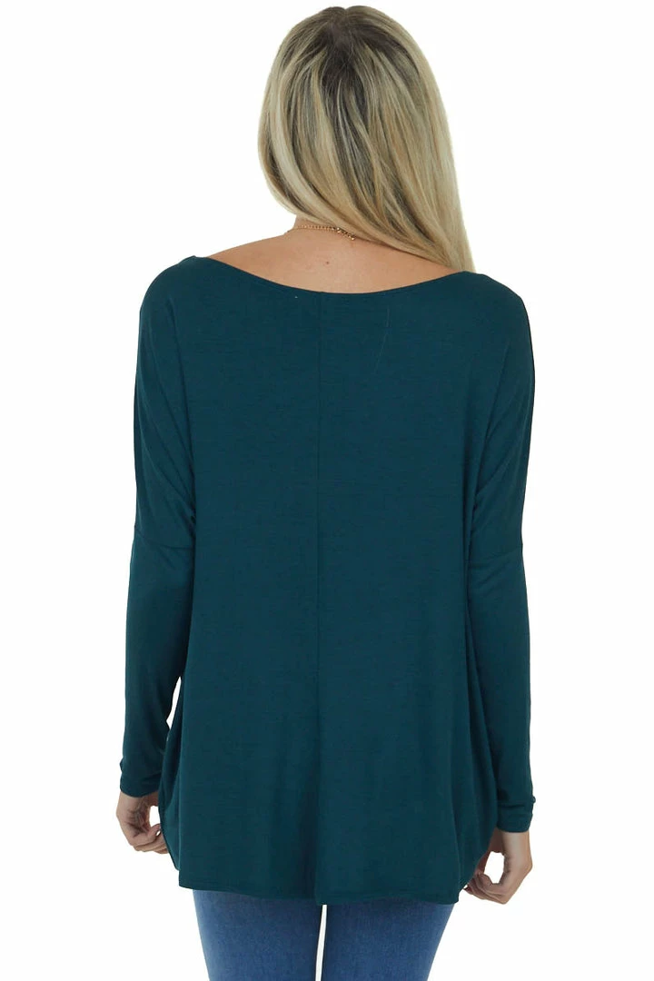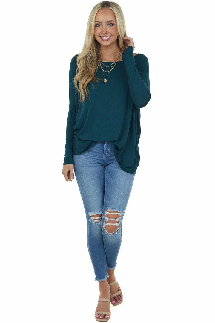 - Pine Long Sleeve Knit Top with Off Shoulder Neckline
