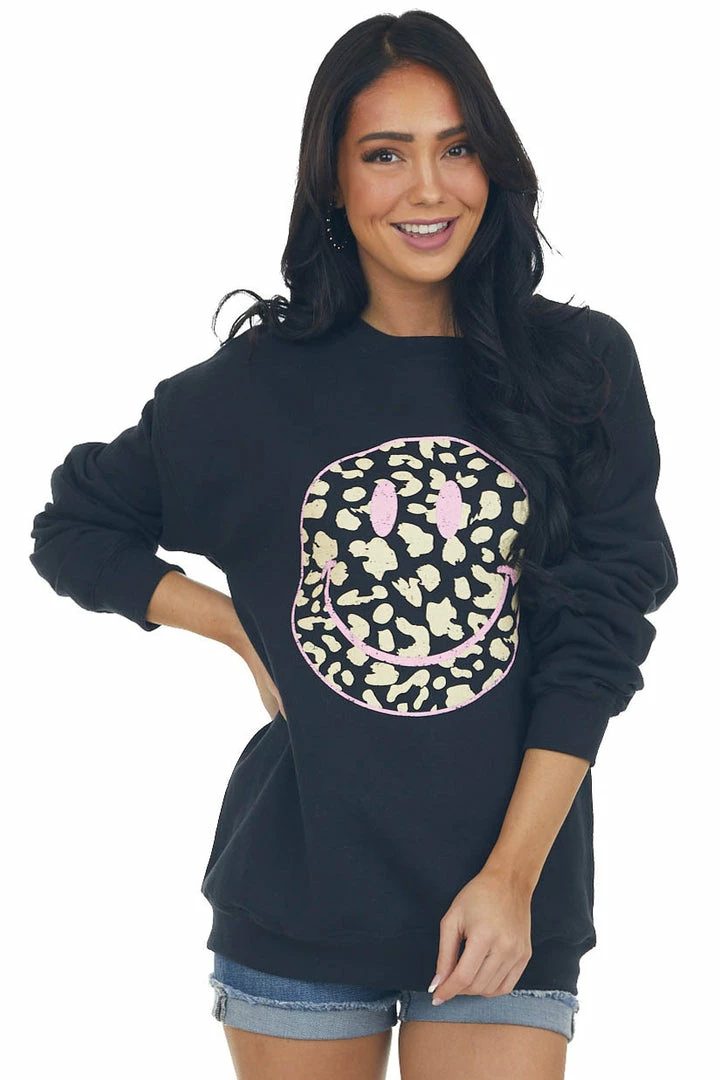 - Leopard smiley graphic in shades of Cream and Bubblegum