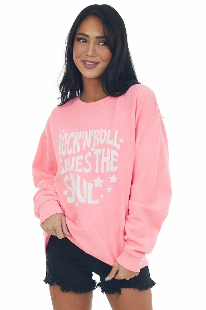 - Neon Pink ‘Rock N Roll’ Graphic Sweatshirt