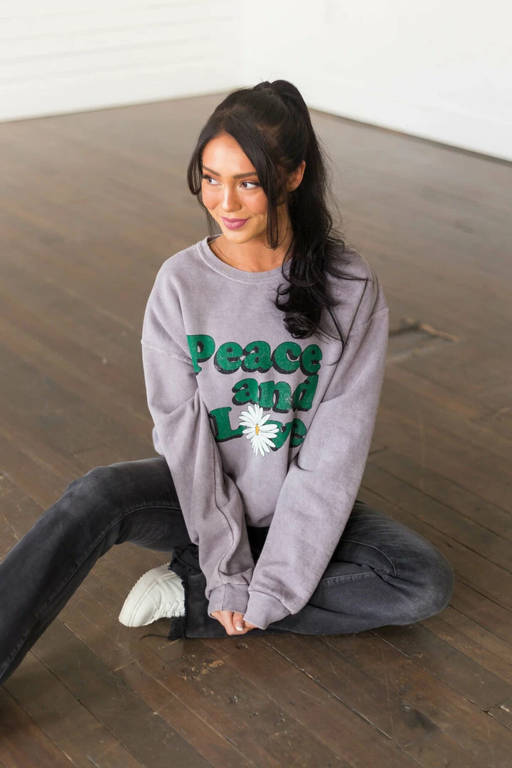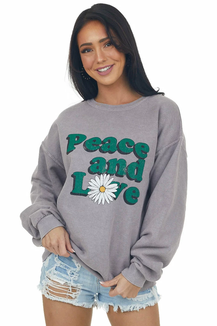 - Vintage Grey ‘Peace and Love’ Graphic Sweater