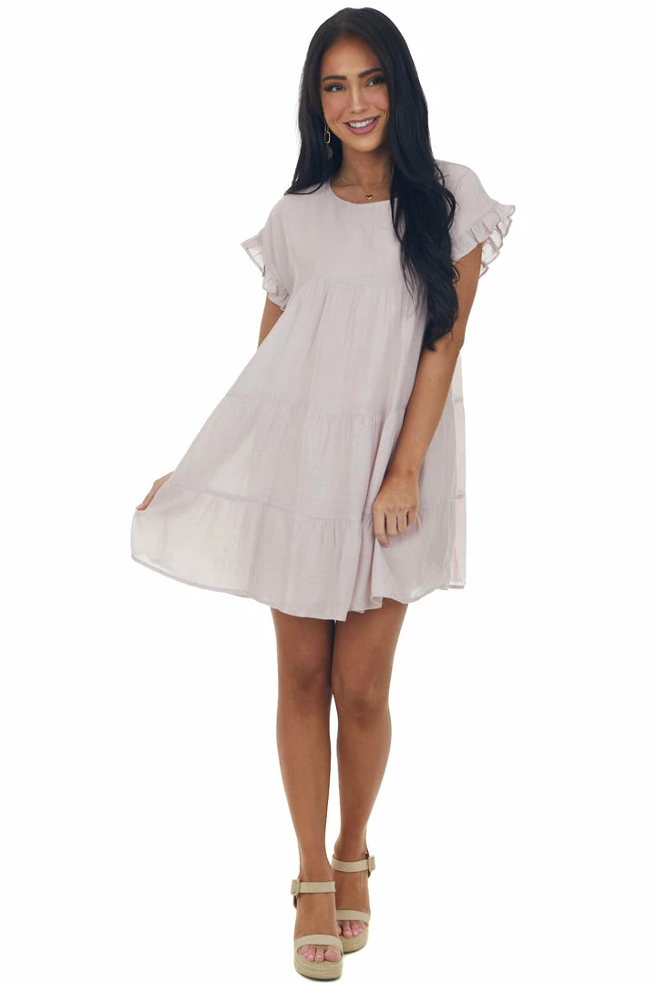 - Pale Mauve Tiered Babydoll Woven Mini Dress