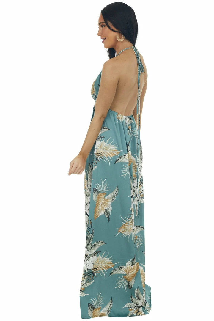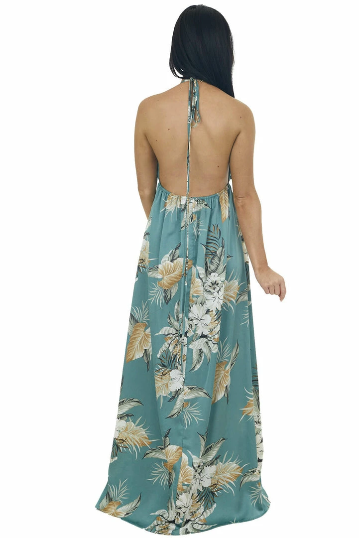 - Juniper Floral Open Back Plunging V Neck Dress