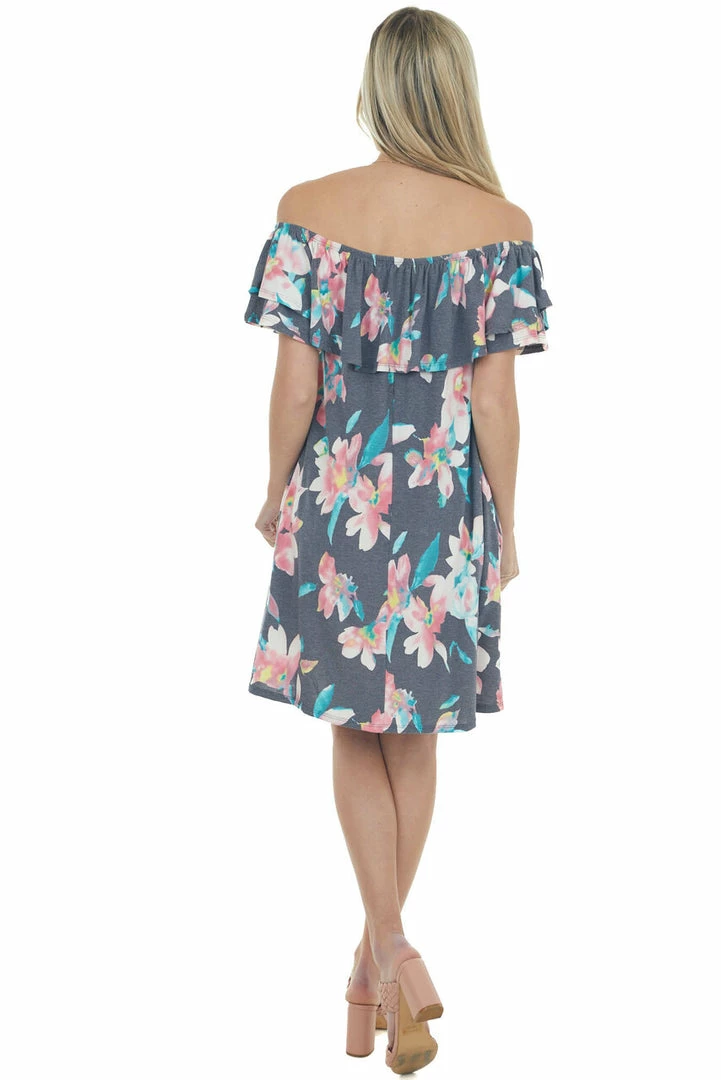- Navy Floral Off Shoulder Overlay Mini Dress