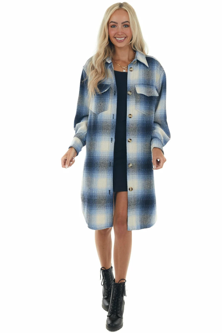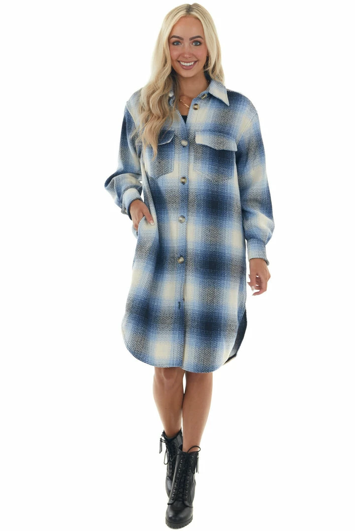 - Plaid in shades of Cream, Navy and Dark Steel Blue