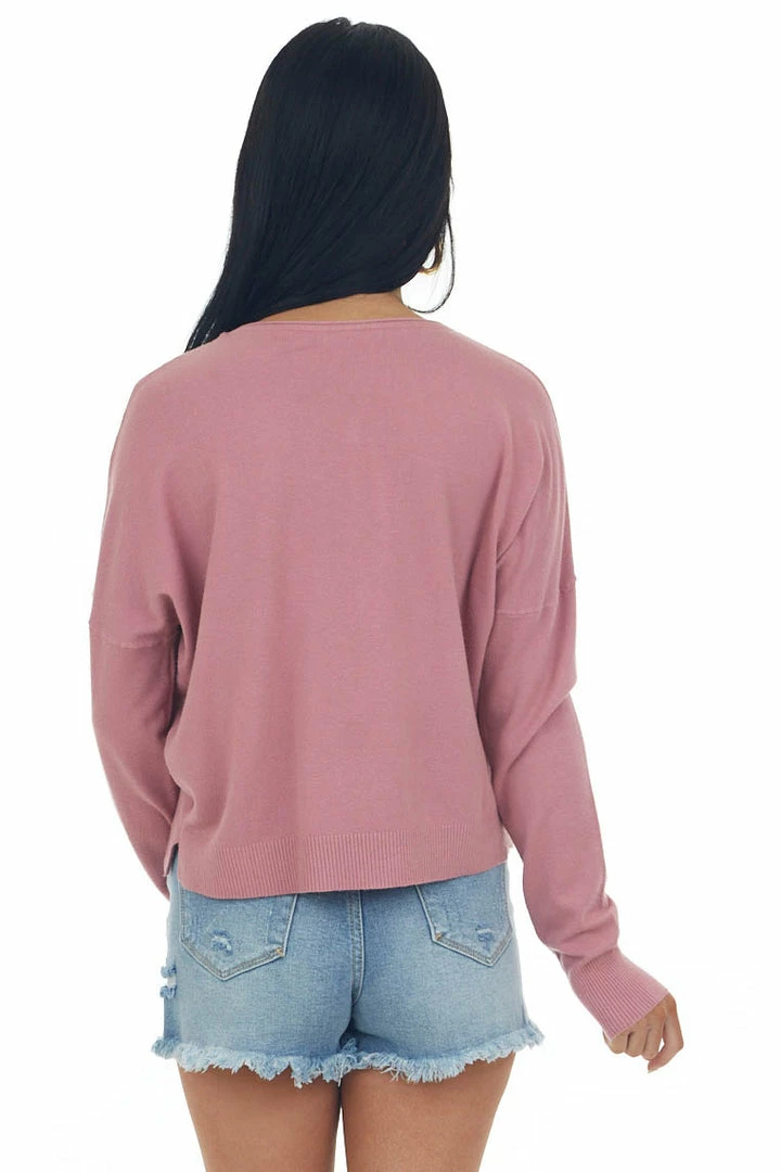 - Dusty Rose Drop Shoulder Super Soft Knit Top