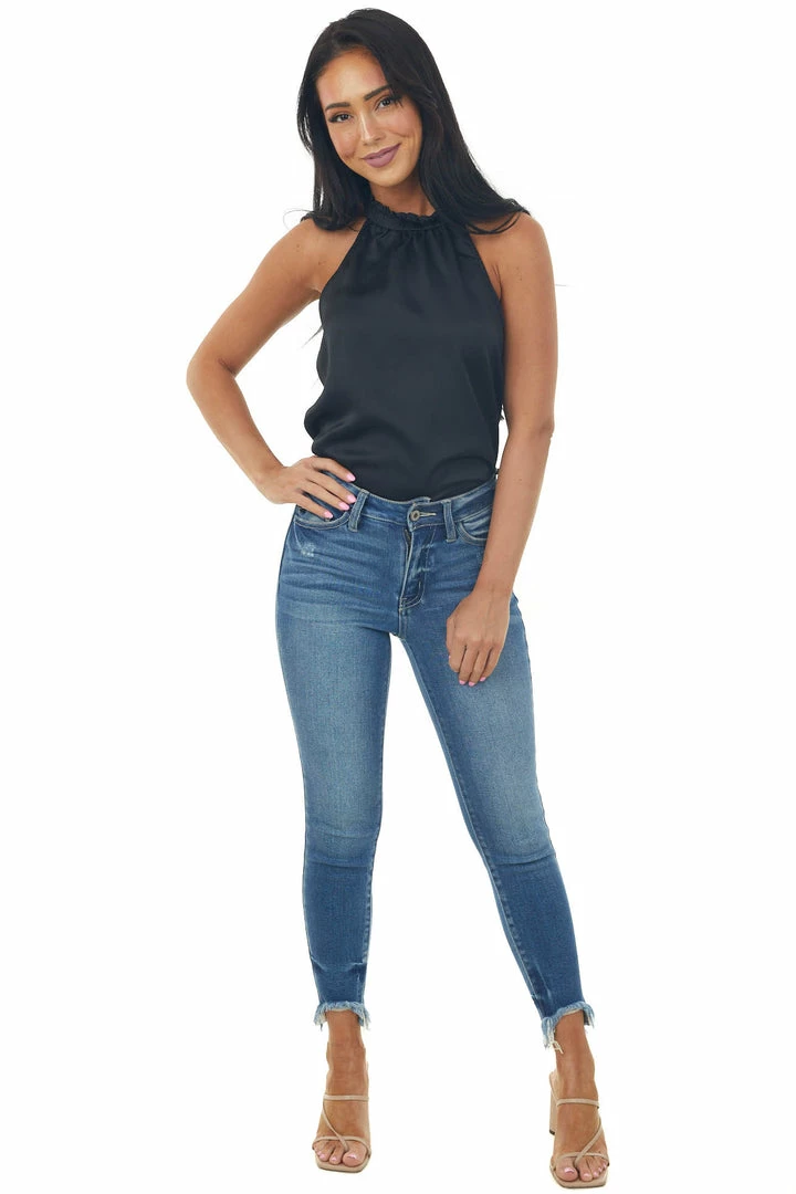 - Black Satin Elastic Shirred Halter Neck Blouse
