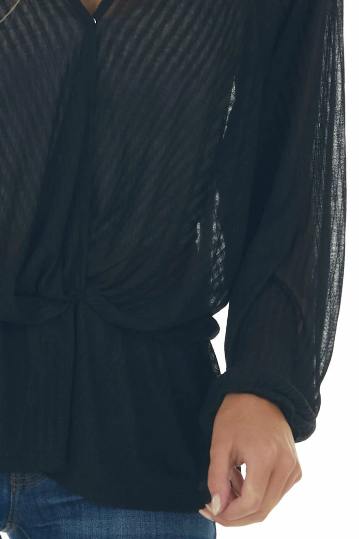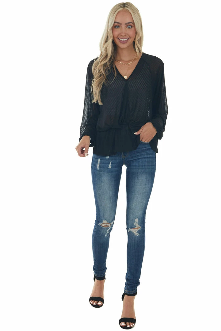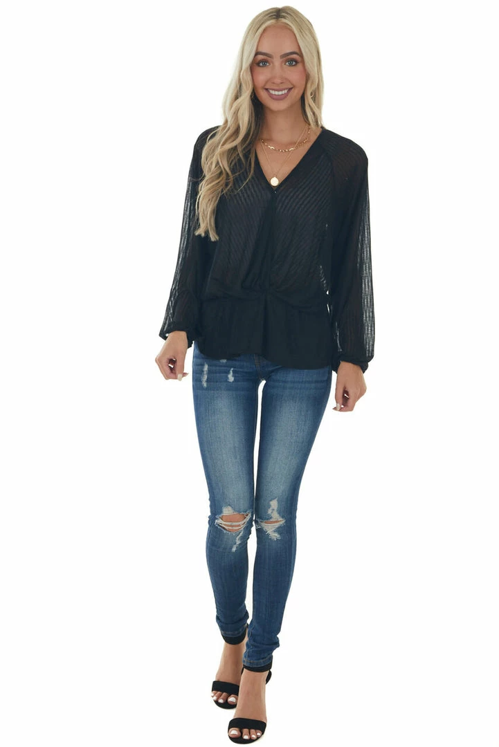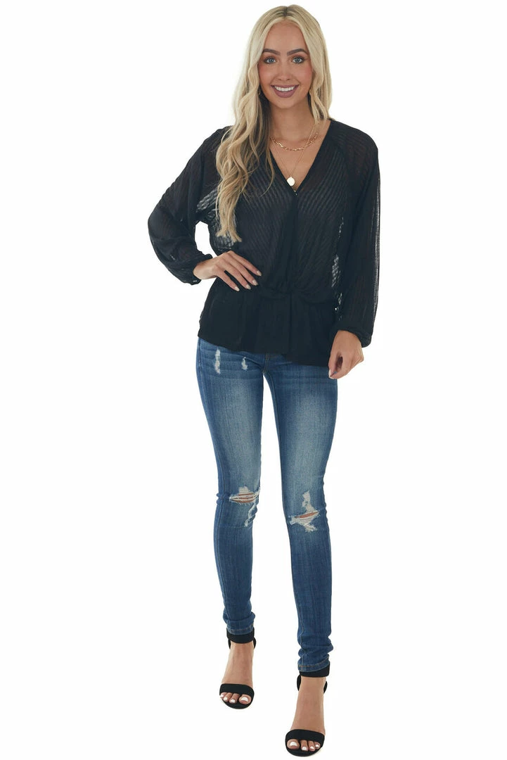 - Black Surplice Neck Loose Peplum Ribbed Top