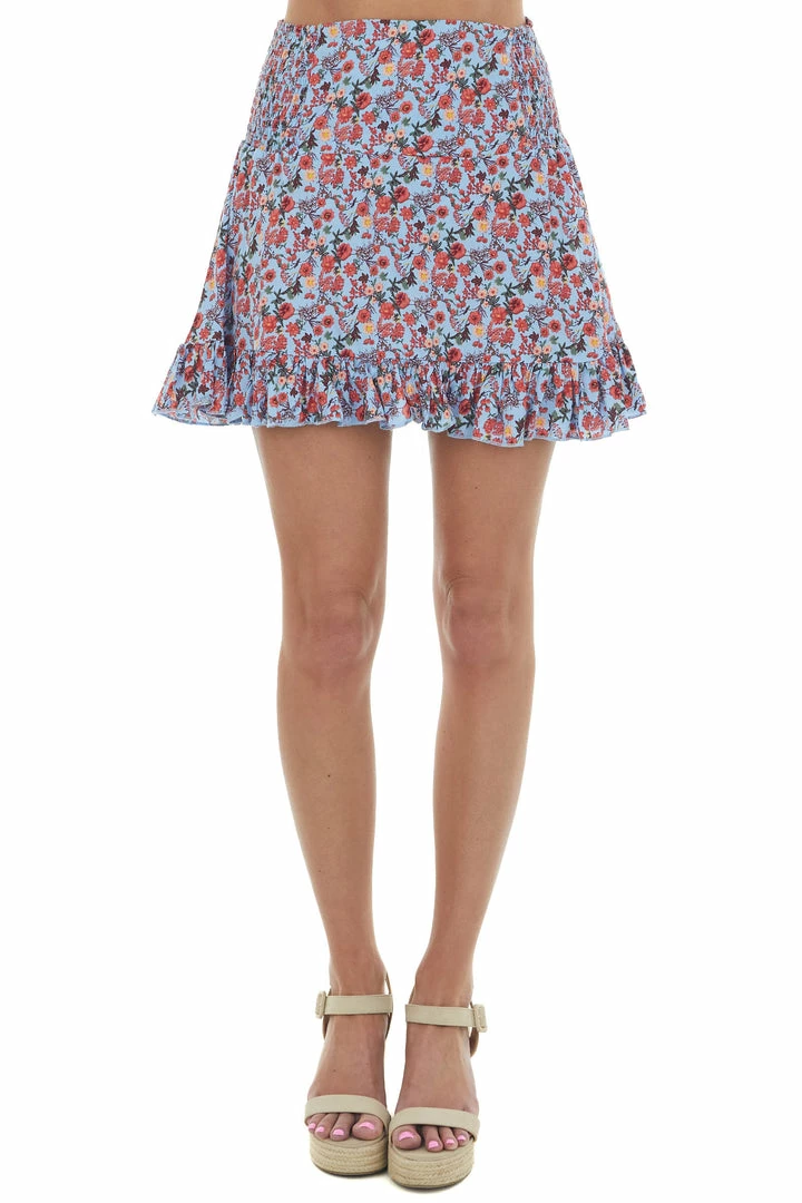 - Cornflower Floral Print Ruffle Hemline Mini Skirt