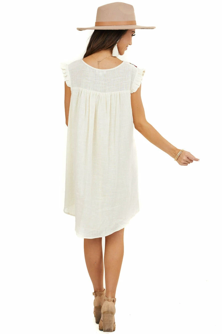- Cream Sleeveless Short Dress with Floral Embroidery Detail