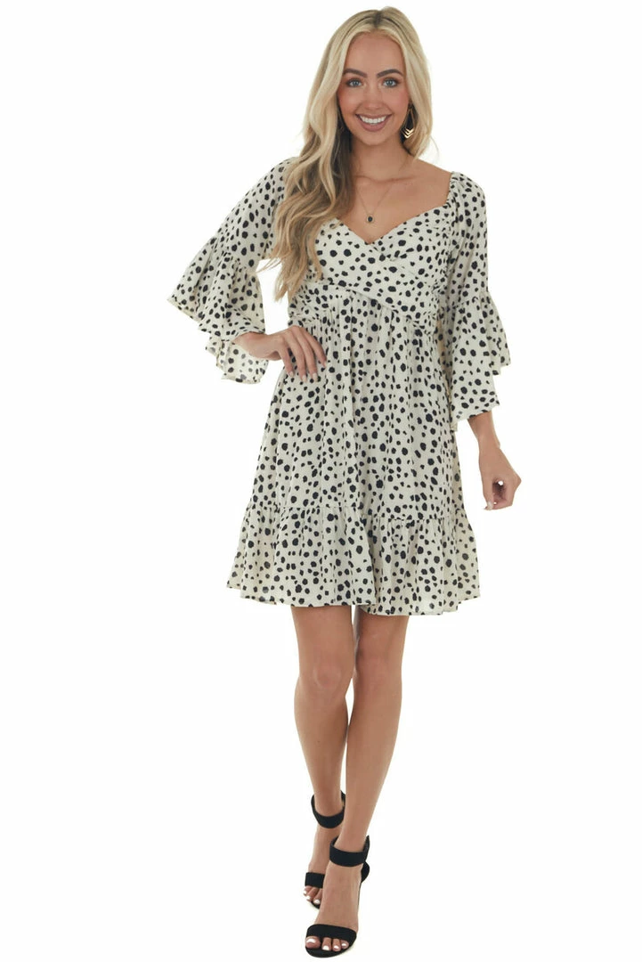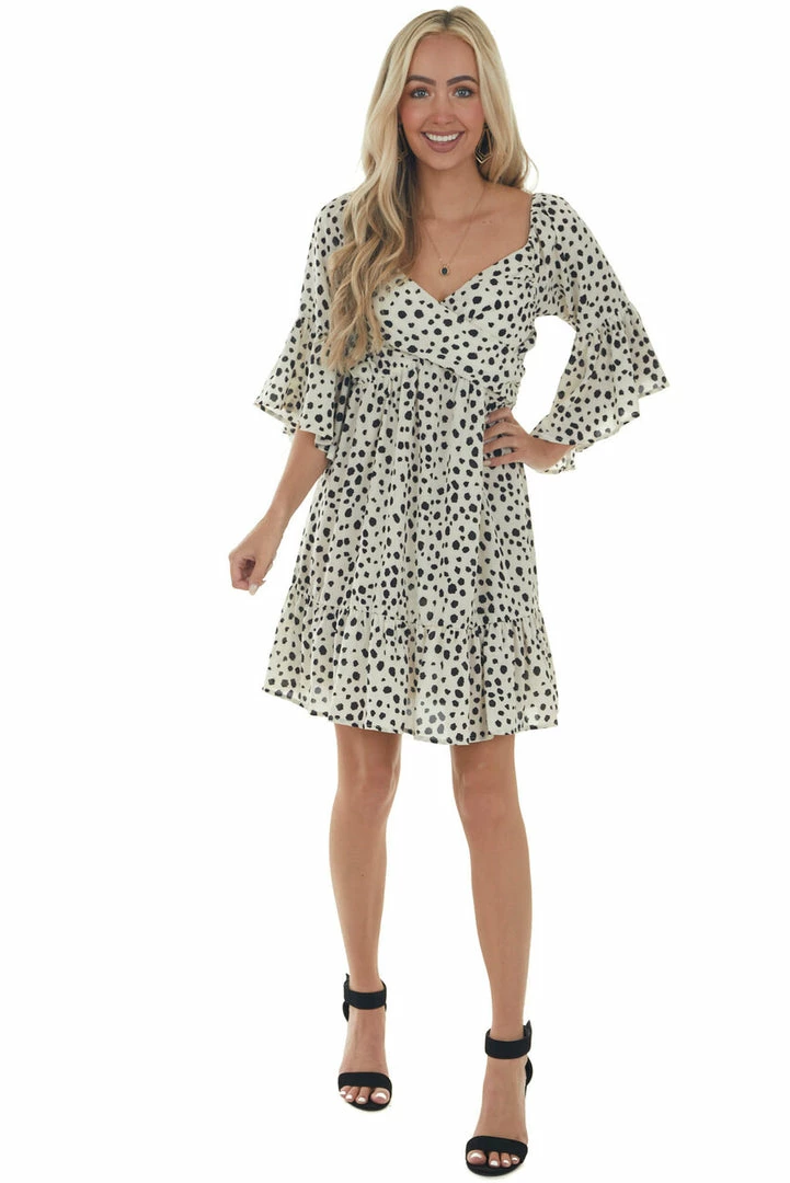 - Cream Animal Print Ruffle Angel Sleeve Dress