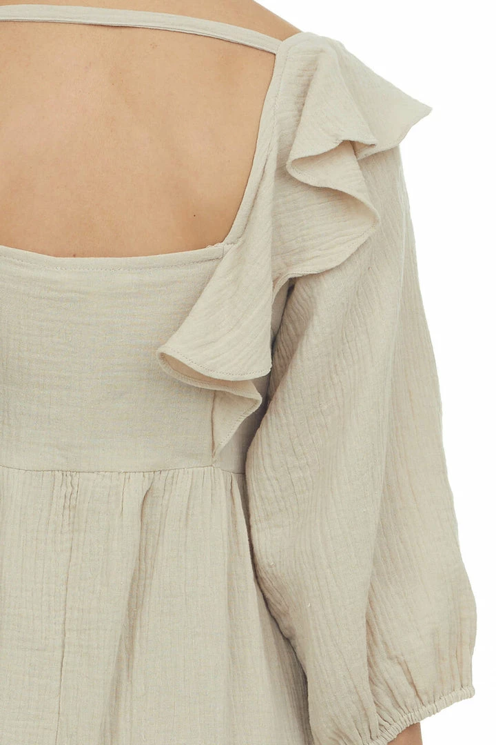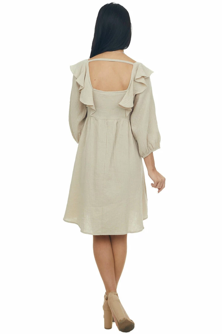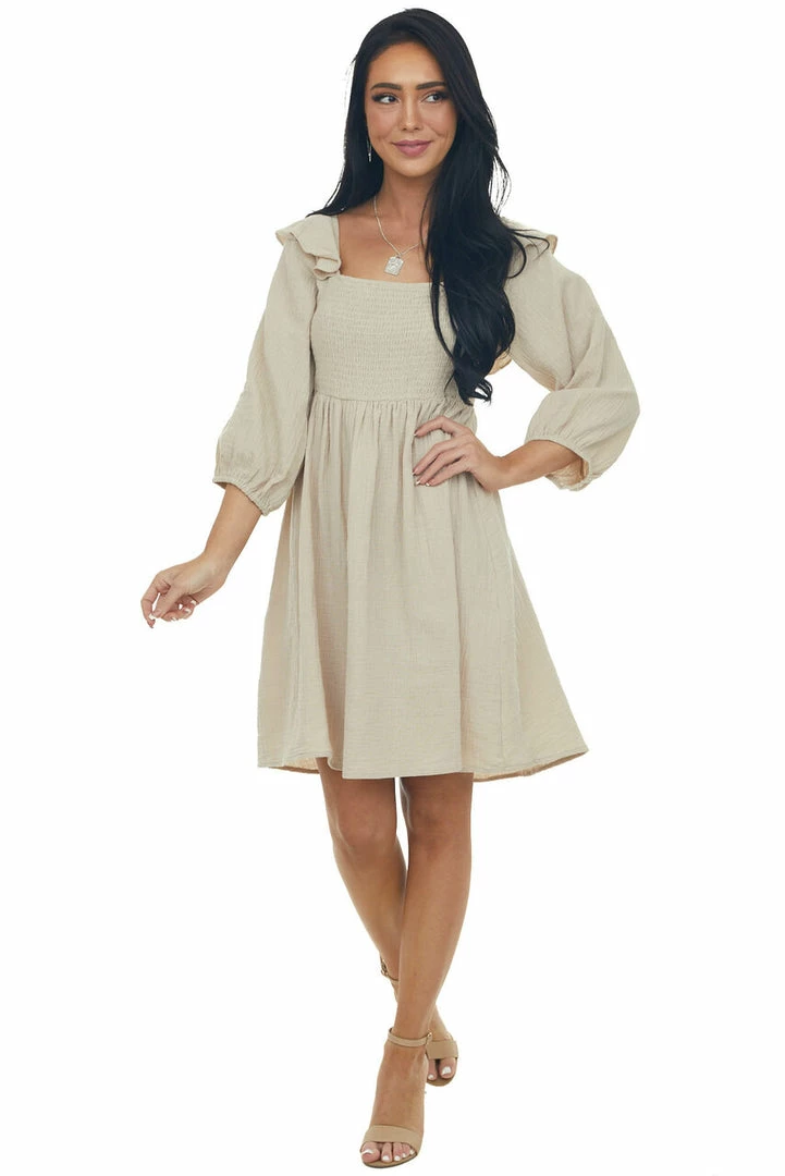 - Latte 3/4 Bubble Sleeve Smocked Gauze Dress