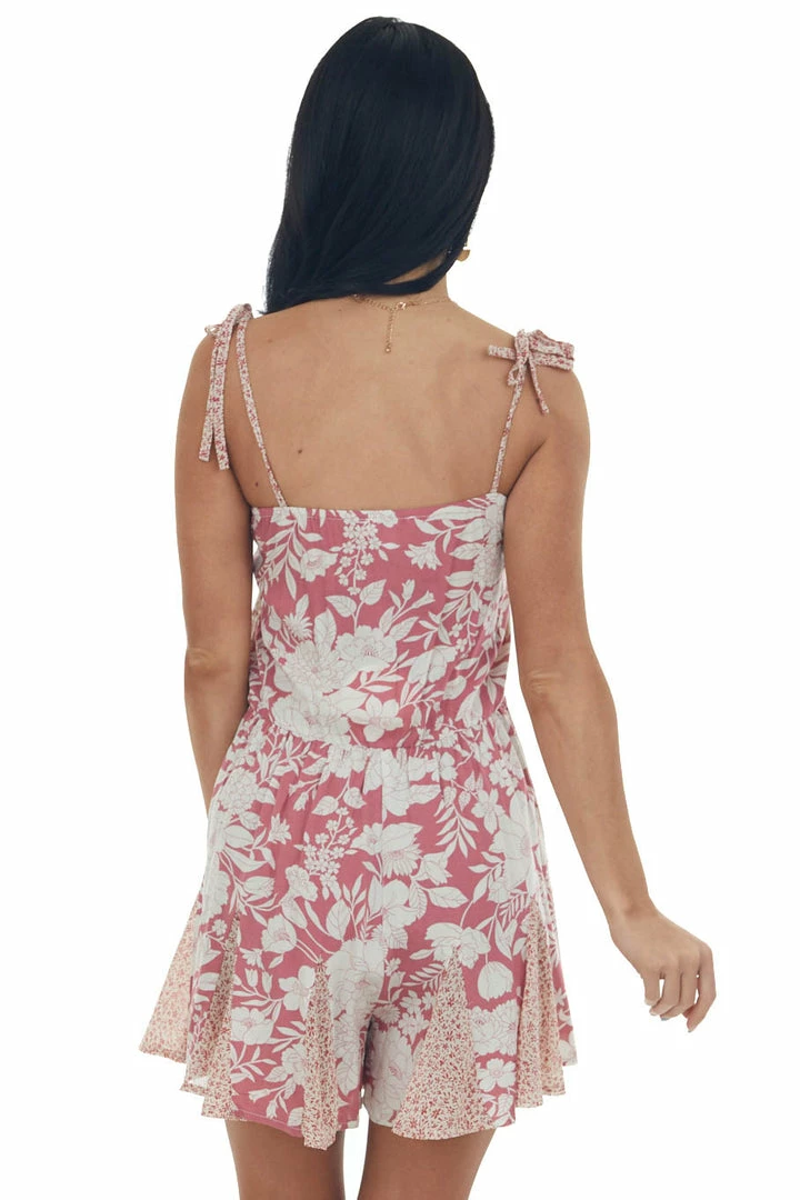 - Hibiscus Floral Tie Strap Smocked Pleat Romper