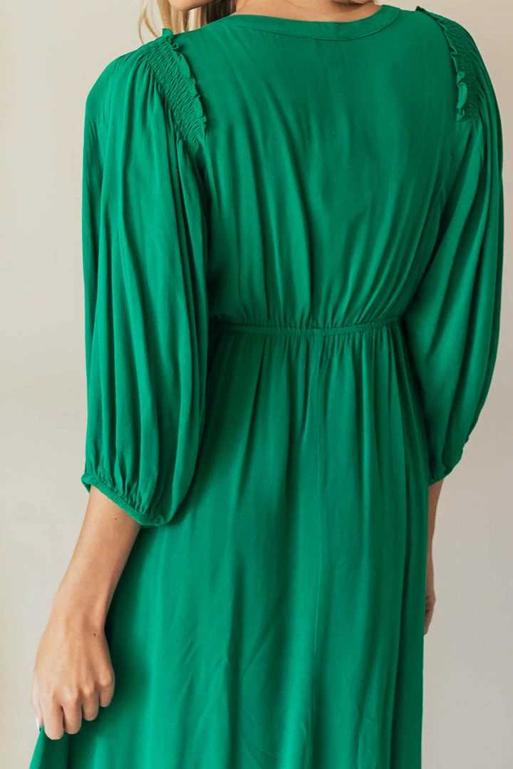 - Kelly Green Notch Neck Dolman Sleeve Midi Dress