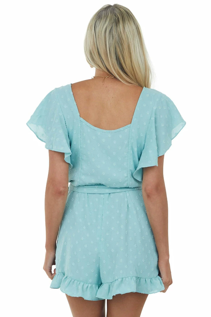 - Light Teal Short Flutter Sleeve Swiss Dot Romper
