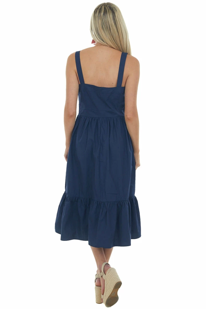 - Navy Square Neck Sleeveless Poplin Midi Dress