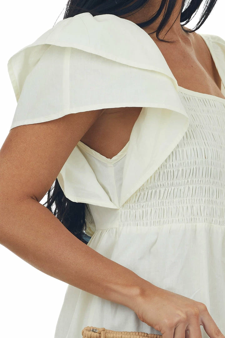 - Pastel Yellow Smocked Babydoll Ruffle Dress