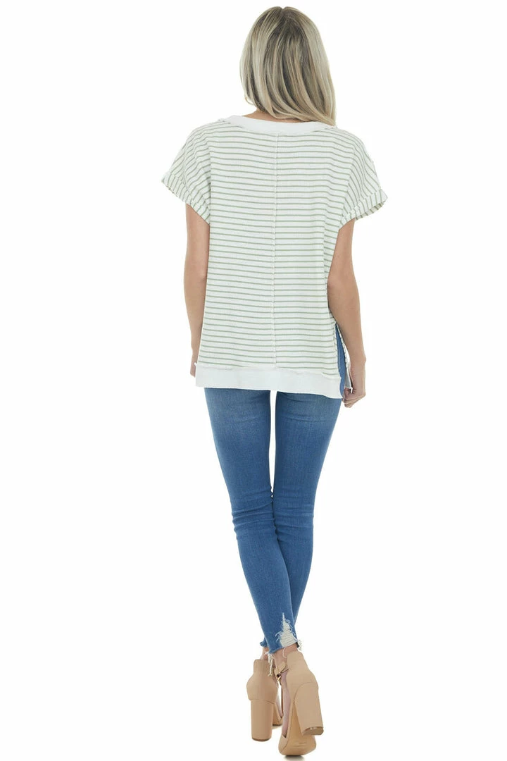 - Sage and Ivory Striped V Neck Waffle Knit Top