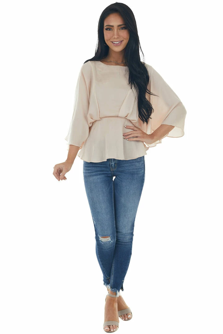 - Tea Rose Kimono Sleeve Pleated Peplum Blouse