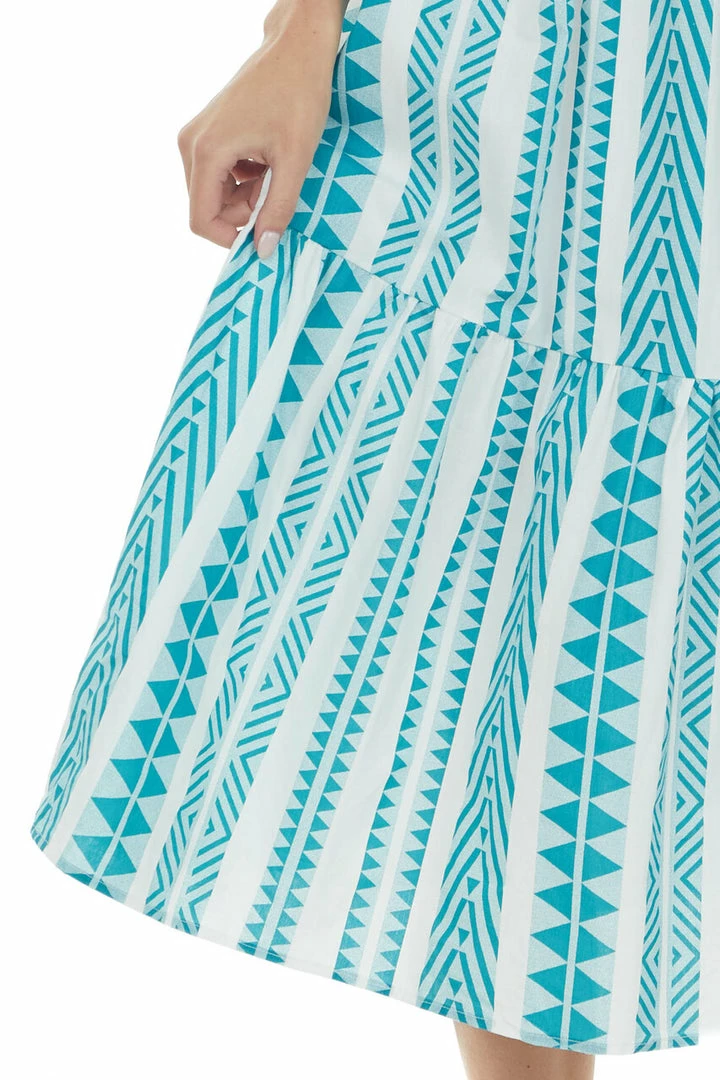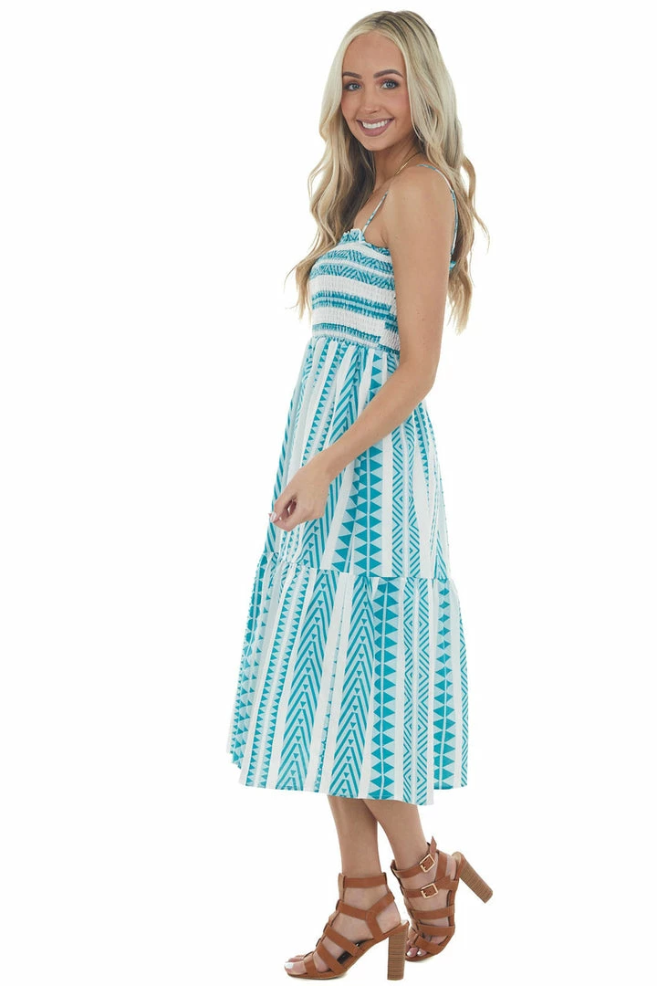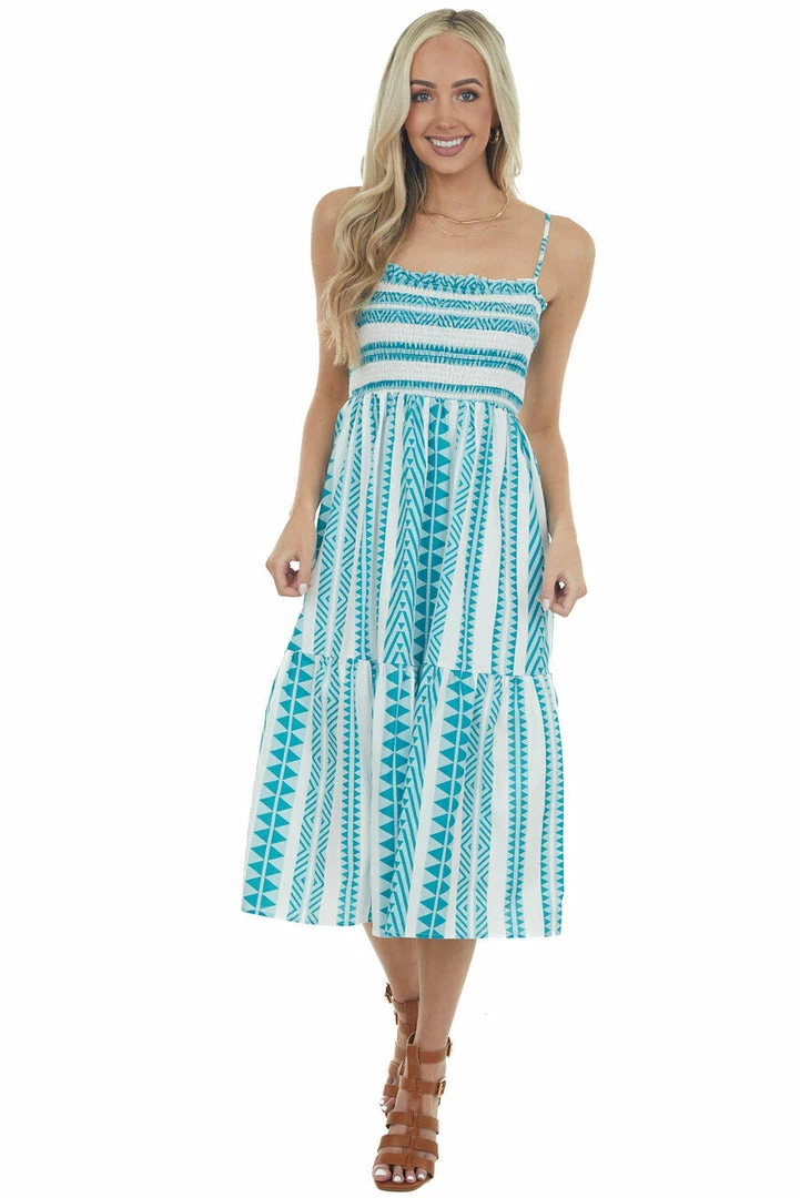 - Teal Abstract Striped Sleeveless Midi Dress